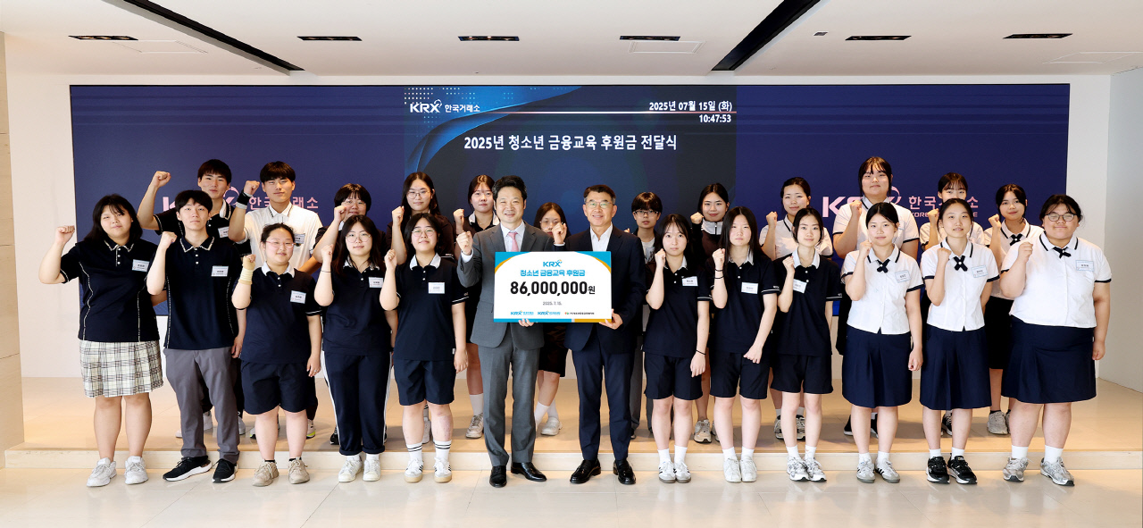 한국거래소는 15일 부산 본사에서 사회 진출을 앞둔 특성화고 학생들의 금융역량 강화를 위한 금융교육 후원금 8600만원을 청소년금융교육협의회에 전달했다.