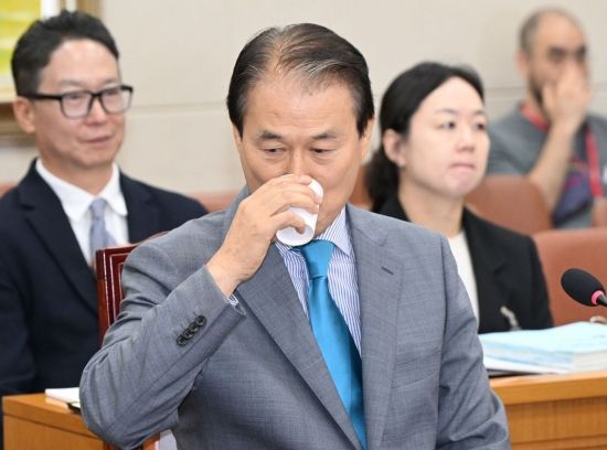 권오을 국가보훈부 장관 후보자가 15일 국회 정무위원회에서 열린 인사청문회에서 물을 마시고 있다. 김현민 기자 |