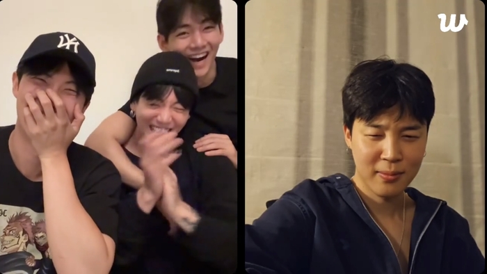 BTS RM-정국-뷔-지민. ‘위버스’ 라이브 방송 캡쳐. |