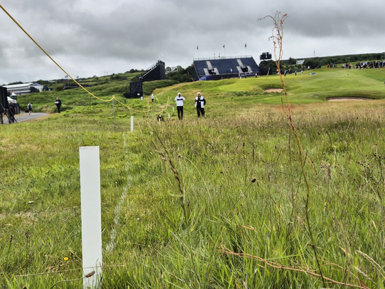 2019년 로리 매킬로이의 꿈을 앗아간 로열 포트러시 1번 홀 왼쪽에 꽂힌 OB말뚝. 성호준 기자 |