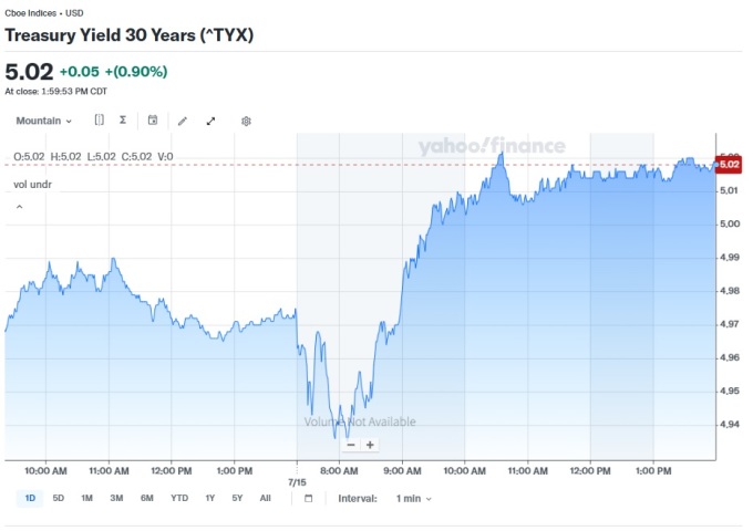 미 국채 30년물 금리 차트, 자료=야후 파이낸스, 2025.07.16 koinwon@newspim.com |