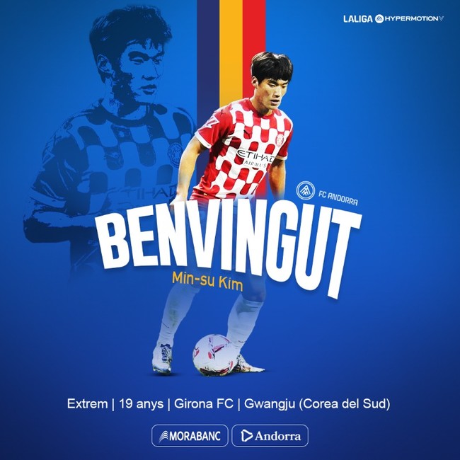 안도라는 15일(한국시간) 공식 홈페이지를 통해 "안도라는 지로나와 김민수 임대 계약에 합의했다. 그는 다음 시즌 안도라에서 뛰게 된다. 첫 프리시즌 훈련에 합류할 예정이다"라고 발표했다.