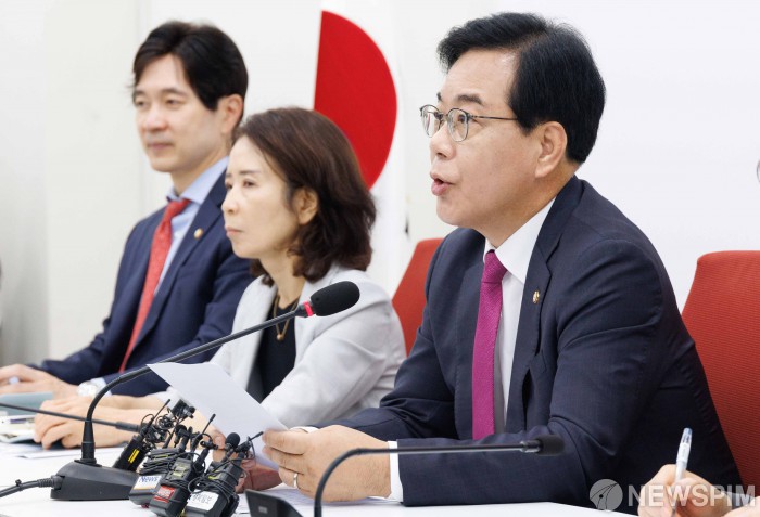 [서울=뉴스핌] 윤창빈 기자 = 송언석 국민의힘 비상대책위원장 겸 원내대표가 16일 오전 서울 여의도 국회에서 열린 현안관련 기자간담회에서 모두발언을 하고 있다. 2025.07.16 pangbin@newspim.com |