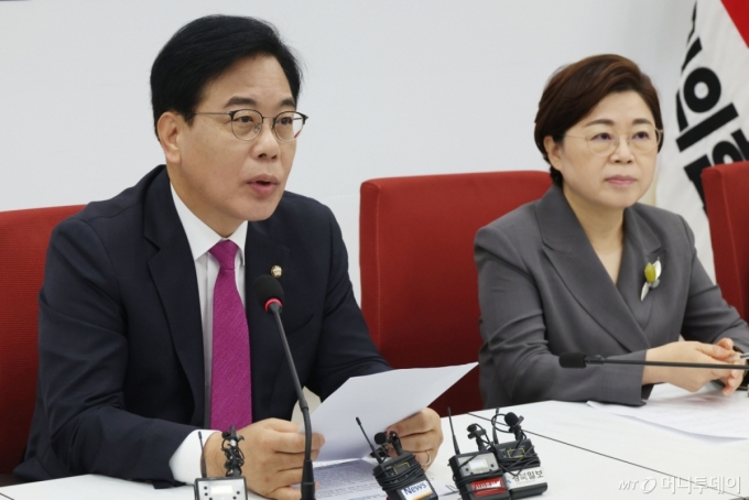 전날 청문회를 겪은 장관 후보자들도 비판했다. 송 비대위원장은 "갑질 여왕이라는 별칭을 얻은 강선우 여성가족부 장관 후보자가 보좌진으로 임금체불 진정을 두 번이나 받았다는 사실이 뒤늦게 밝혀졌다"며 "갑질 영역을 넘어 위법한 영역으로 들어갔다. 수사 대상이 됐다. 자진 사퇴하거나 (이재명 대통령이) 지명 철회를 하라"고 했다.