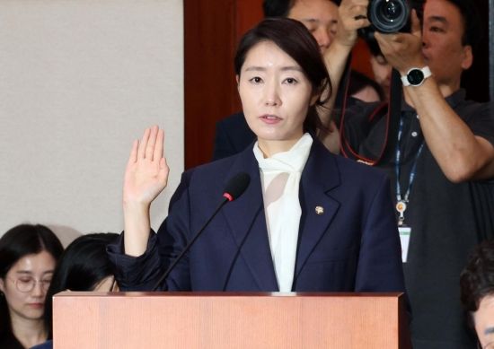 강선우 여성가족부 장관 후보자가 14일 국회 여성가족위원회에서 열린 인사청문회에서 선서하고 있다. 2025.7.14 김현민 기자 |