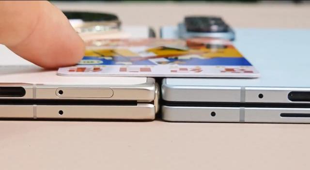 IT인플루언서 유니버스아이스의 중국 아너 '매직 V5'(왼쪽)과 삼성전자 갤럭시 Z 폴드7 두께 비교를 위해 얇은 카드를 댄 모습. 왼쪽의 중국산 폴더블폰의 두께가 더 두꺼운 것을 확인할 수 있다. [사진=유니버스아이스 'X' 영상 캡처] |