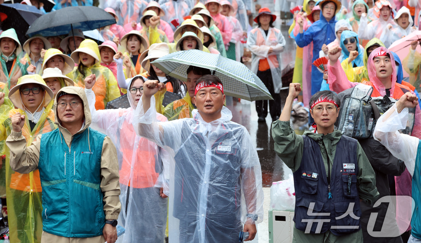 (서울=뉴스1) 신윤하 김종훈 기자 = 전국민주노동조합총연맹(민주노총)이 윤석열 정권의 반 노동 정책을 폐기하고 노동조합법 2·3조를 즉각 개정할 것을 촉구하며 총파업에 나섰다.