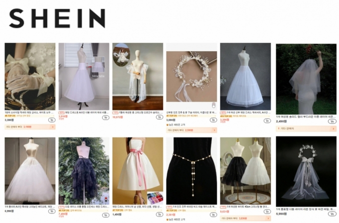 쉬인에서 판매되는 웨딩 제품들 갈무리 |