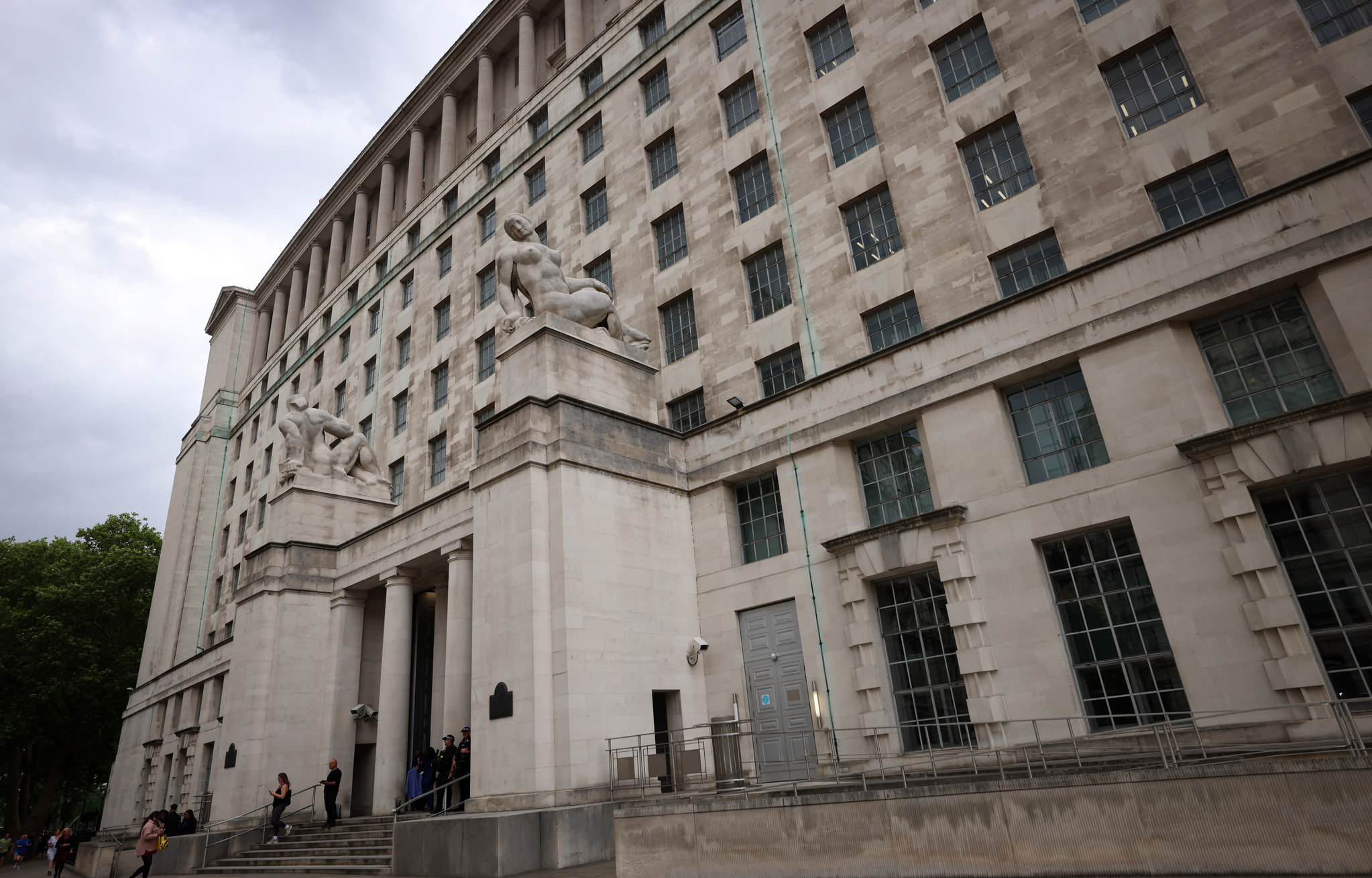 지난 15일(현지시간) 영국 런던 국방부(MoD) 전경. 국방부는 유출된 명단에 포함된 아프가니스탄 군인 600명과 그 가족 1800명이 아직 아프가니스탄에 남아 있는 것으로 보고 있다. EPA=연합뉴스 |