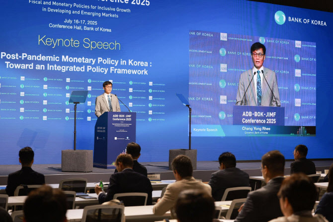 이창용 한국은행 총재가 16일 오전 서울 중구 한국은행에서 열린 ‘ADB-BOK-JIMF 컨퍼런스’에 참석해 기조연설을 하고 있다. (사진=한국은행) |