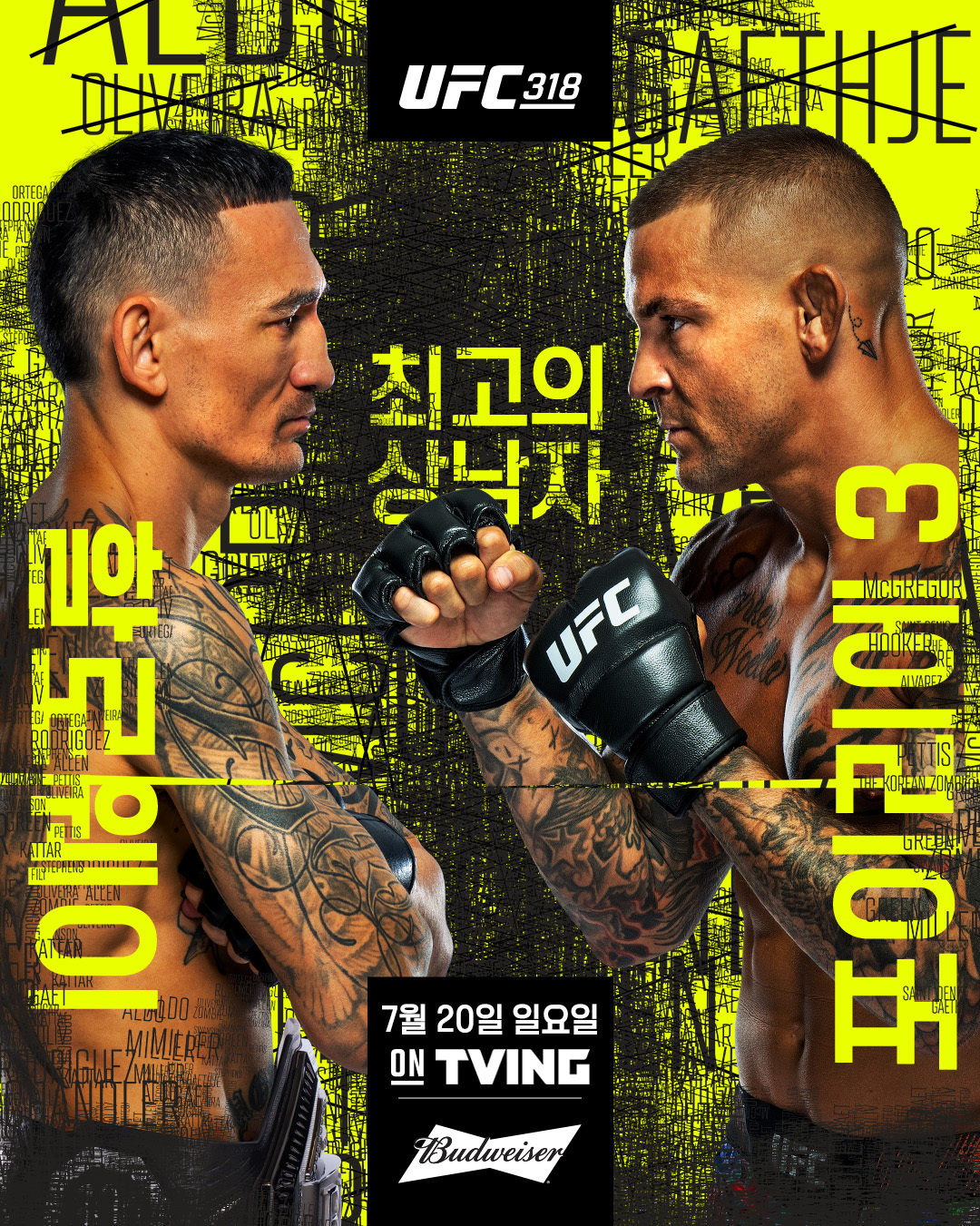 한편 ‘UFC 318: 할로웨이 vs 포이리에 3’ 메인카드는 20일 오전 11시부터 tvN과 온라인동영상서비스(OTT) TVING에서, 언더카드는 오전 9시부터 TVING에서 생중계된다.