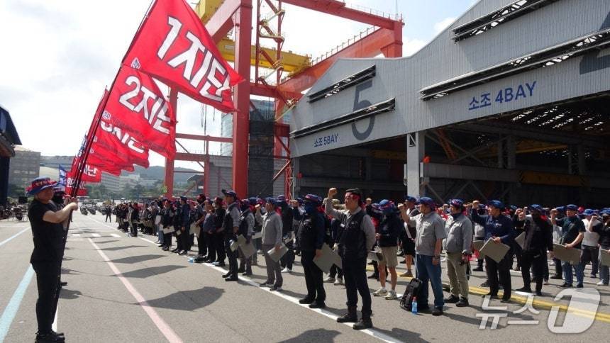 (울산=뉴스1) 조민주 기자 = 올해 임금·단체협약 교섭 난항으로 이틀째 부분 파업을 벌이고 있는 HD현대중공업 노조가 내주 추가 파업을 결정했다.