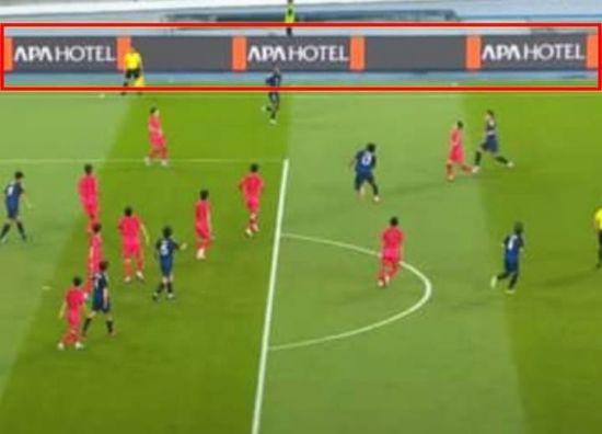 '2025 동아시아축구연맹(EAFF) E-1 챔피언십'(동아시안컵) 경기 중계 장면에서 확인된 APA호텔 광고. 서경덕 교수 |