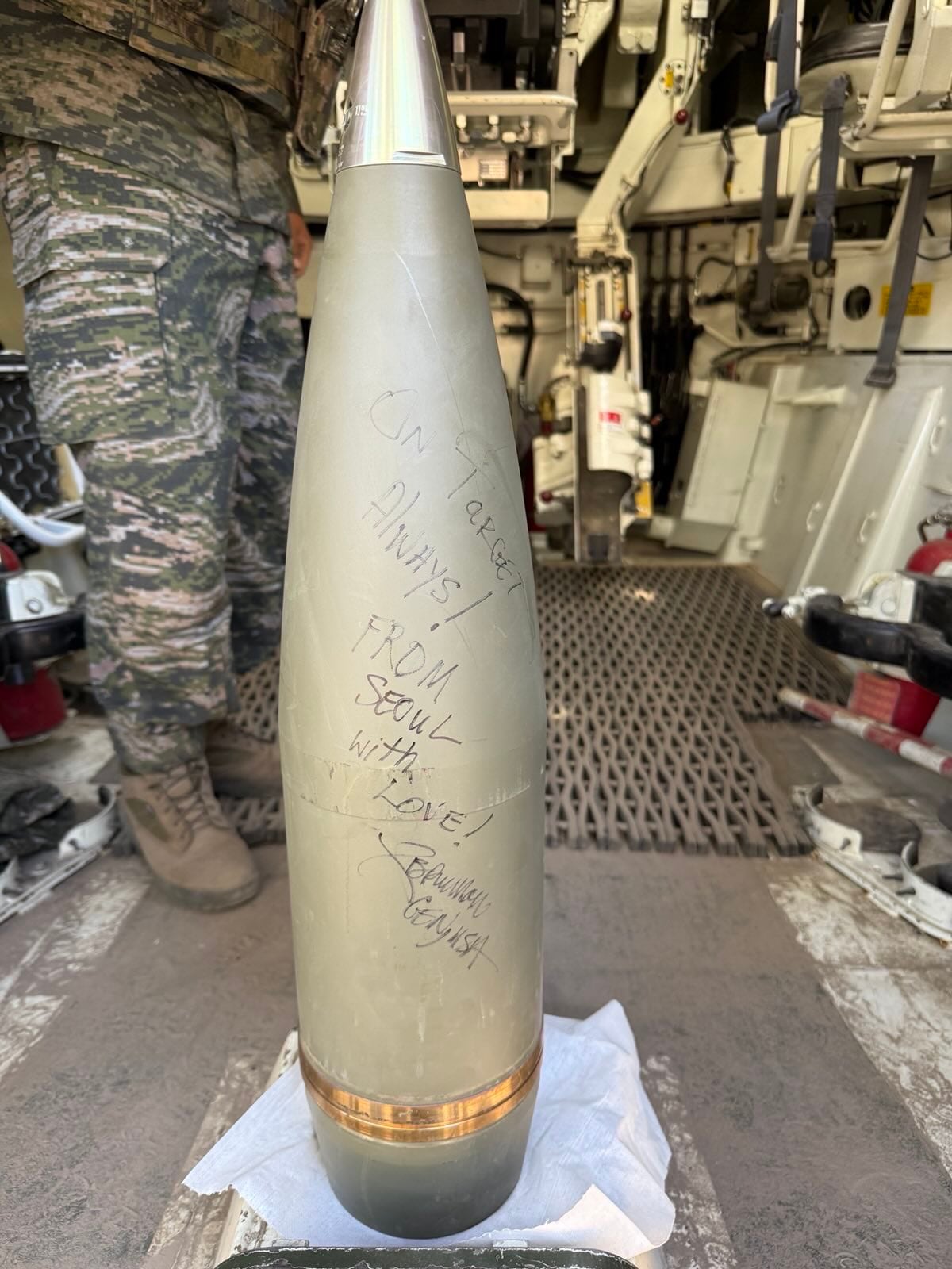 제이비어 브런슨 주한미군 사령관이 18일 X(옛 트위터)에 우리 해병대 K9 자주포탄에 자필 서명을 한 사진을 올렸다. /X |