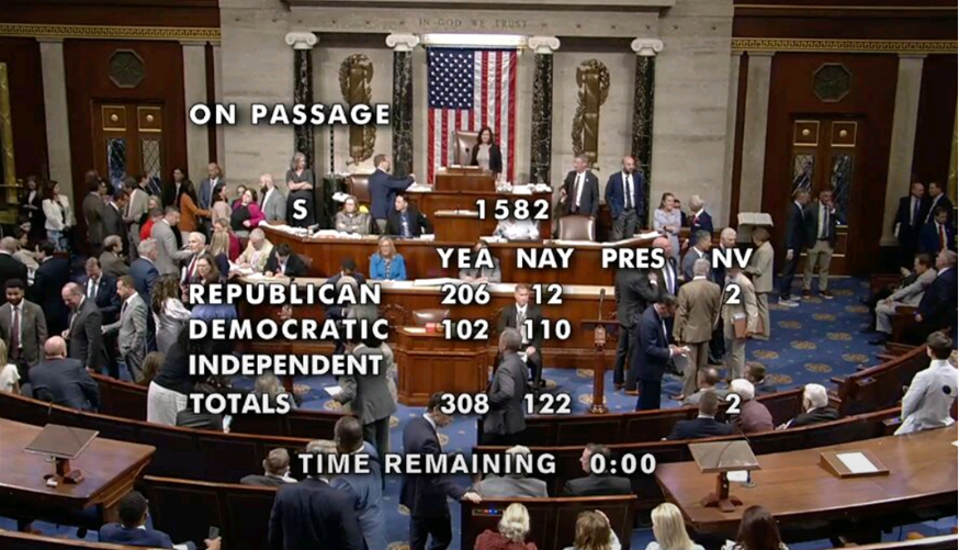 미국 하원의 표결에서 17일(현지시간) 스테이블코인에 대한 규제틀을 담은 지니어스법이 찬성 308표, 반대 122표로 가결되는 상황을 보여주는 화면 캡처 [미 하원 유튜브 채널] |