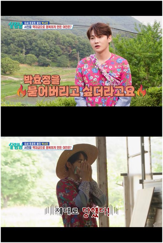 19일 방영된 KBS2TV 예능 '살림남2'에서는 촌캉스를 떠나는 박효정, 박서진 남매의 모습이 그려졌다. 박서진은 늘 최애라고 말하곤 하는 랄랄 이명화를 만나고는 기쁜 웃음을 감추지 못했다.