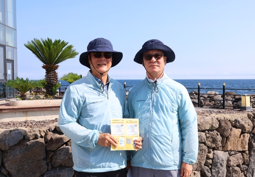 지난 8일 오전 제주시 용담레포츠공원에서 만난 조상백·이윤계(61)씨는 도민과 관광객을 상대로 드론 금지 구역을 알리는 홍보 팸플릿을 나눠주는 데 여념이 없었다.