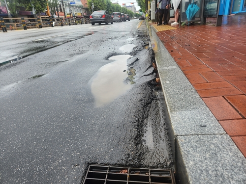 (서울=연합뉴스) 김준태 기자 = 폭염이 떠난 뒤 집중 호우가 이어진 지난 18일. 동대문구 제기동 홍파초등학교 버스정류장 앞 도로의 아스팔트는 마치 아이스크림이 녹았다가 다시 굳은 것처럼 변형돼 있었다.