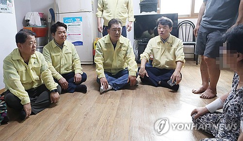 김 원내대표는 1층 높이까지 침수된 빌라 등을 둘러본 뒤 "피해가 신속히 복구되도록 대통령과 정부에 특별재난지역 선포를 직접 건의했다"며 "(피해 복구에) 차질이 없도록 만전을 기하겠다"고 밝혔다.