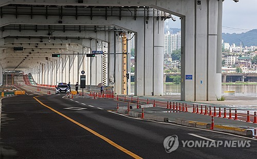 (서울=연합뉴스) 정수연 기자 = 경기 북부 집중호우로 20일 오전 통제됐던 서울 잠수교 차량 통행이 오후 들어 재개됐다.
