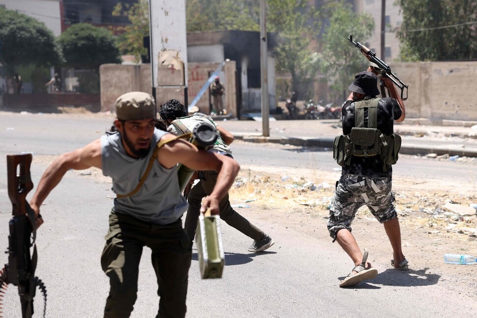 19일(현지시각) 시리아 남부 스와이다 지역에서 시리아 정부의 즉각 휴전 선언에도 베두인족 민병대원들이 드루즈족 민병대원들과 교전을 벌이고 있다. AFP 연합뉴스 |