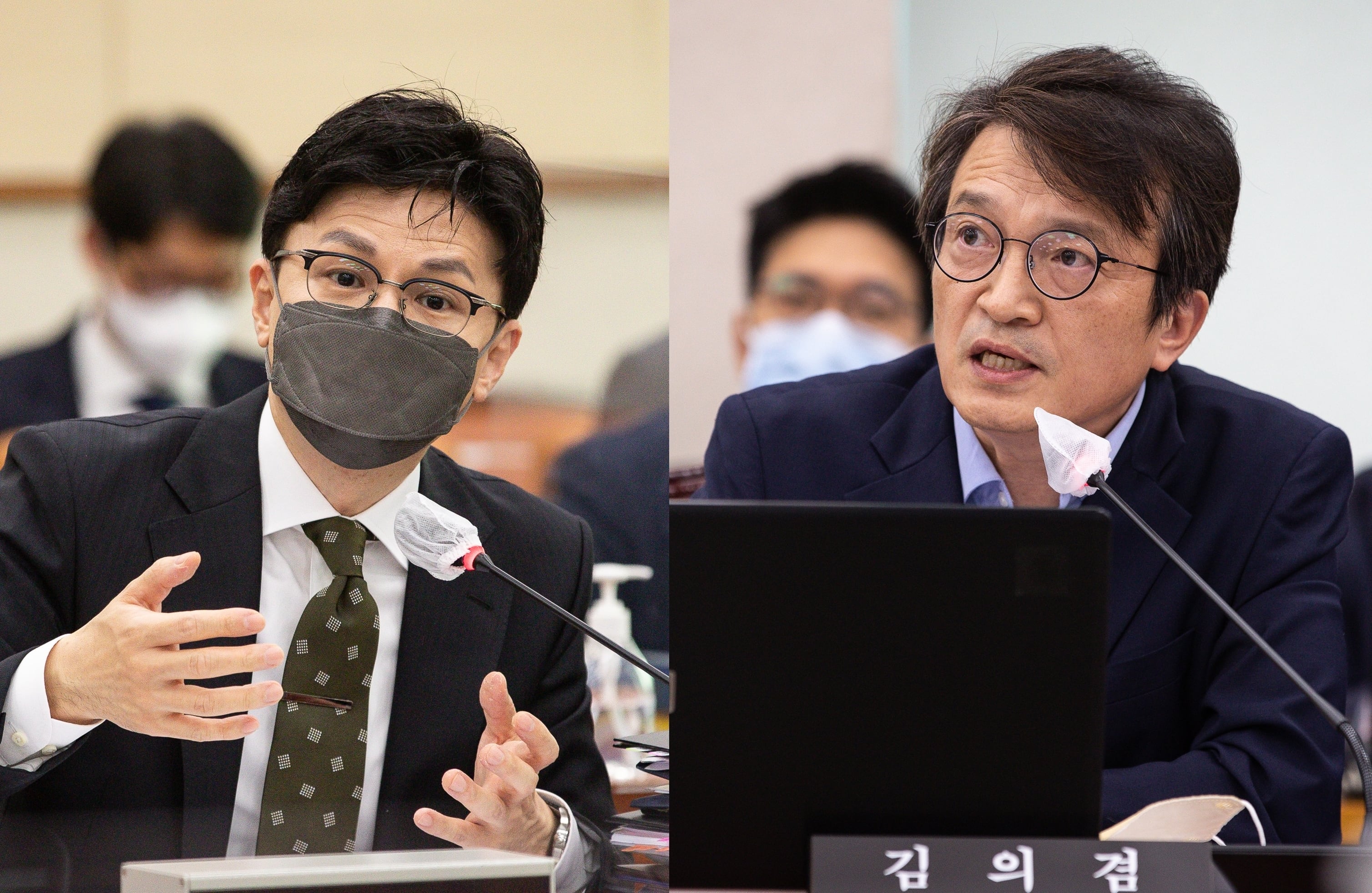 지난 2022년 10월 국정감사에서 한동훈 당시 법무부장관(왼쪽)과 김의겸 더불어민주당 의원이 설전을 벌이는 모습./뉴스1 |