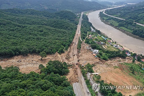산청, 산사태·폭우 피해 도로 복구 작업 |