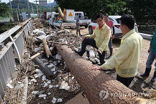 김 전 장관은 이날 오후 4시 20분께 서태원 가평군수와 함께 가평군 상면 대보교 일대를 찾아 호우 피해 현황을 보고받고, 현장에서 구조 및 복구 작업에 나선 경찰과 소방 관계자들을 격려했다.