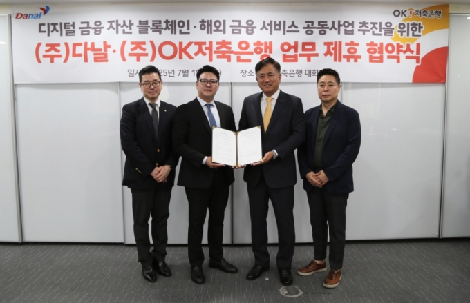 정길호 OK저축은행 대표는 "전국적 결제 인프라와 기술을 갖춘 다날과의 협약을 통해 급변하는 디지털금융 시장과 정책 환경 변화에 민첩하게 대응하며 디지털 경쟁력을 갖춘 저축은행으로 도약하겠다"며 "앞으로도 디지털·IT 분야를 선도하는 다양한 기업들과 전략적 파트너십을 확대해 고객에게 안정적이고 편리한 금융서비스를 제공해 나가겠다"고 밝혔다.