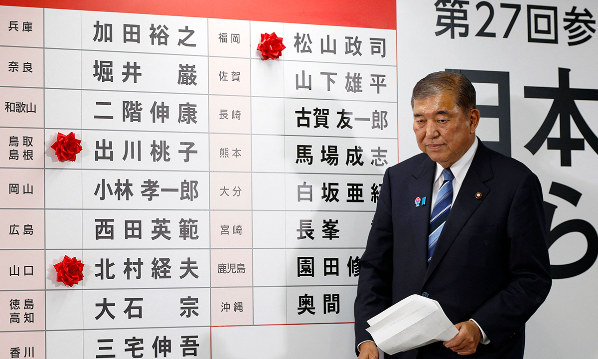 이시바 총리는 과반 유지에 필요한 50석 확보를 “반드시 달성해야 할 목표”라고 강조하며 선거에 임했다. 그러나 개표 결과 자민당은 39석, 공명당은 8석을 얻는 데 그쳤다. 두 정당의 기존 의석 75석과 더하면 여당 의석수는 122석으로 과반(125석)에 3석 모자란다. 참의원 정수는 248석이며, 6년 임기 의원을 3년마다 절반씩 선출한다.