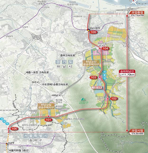 정부가 서울지하철 3호선을 연장해 경기 하남시 감일·교산지구를 잇는 '송파하남선 광역철도' 기본계획을 승인한다.