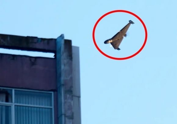 2025년 6월 17일 우크라이나 수도 키이우를 겨냥한 러시아군의 대규모 미사일과 드론 공격이 이어지는 가운데, 러시아군이 발사한 이란제 샤헤드 드론이 건물을 향해 다가가고 있다. AP 연합뉴스 |