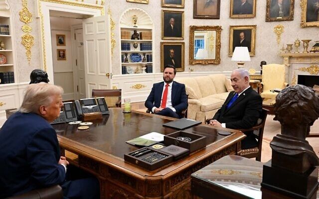 [서울=뉴시스] (왼쪽부터) 도널드 트럼프 미국 대통령, JD 밴스 미국 부통령, 베냐민 네타냐후 이스라엘 총리가 지난 8일(현지 시간) 워싱턴DC 백악관에서 회담하고 있다. 이스라엘이 시리아 등을 공습하자 미국 행정부 내부에서 네타냐후 총리에 대한 불만이 고조되고 있다. (사진=이스라엘 총리실 X 갈무리) 2025.07.21. *재판매 및 DB 금지 |