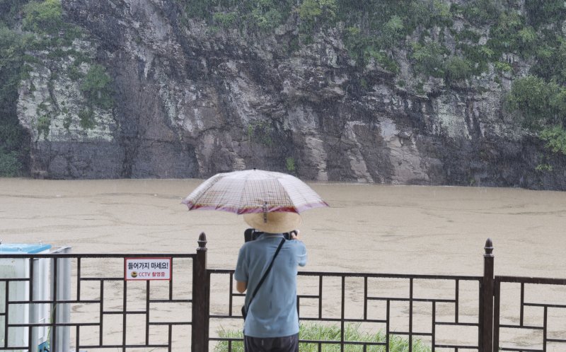 세계유산 등재 1주일만에 침수호우특보가 내려진 지난 19일 울산 울주군 대곡리 반구대 암각화가 물에 잠겨 있다.뉴시스 |