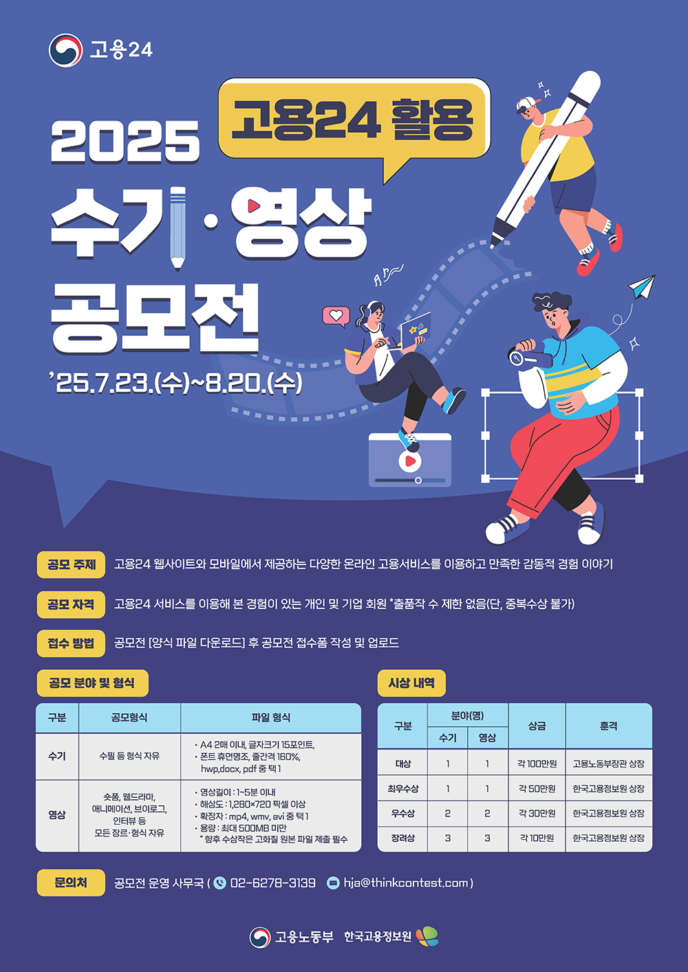 고용노동부와 한국고용정보원은 오는 23일부터 내달 20일까지 ‘고용24 활용 수기·영상 공모전’을 진행한다고 밝혔다. 이번 공모전은 디지털 고용서비스의 긍정적 경험을 공유하고 확산하기 위해 마련됐다.