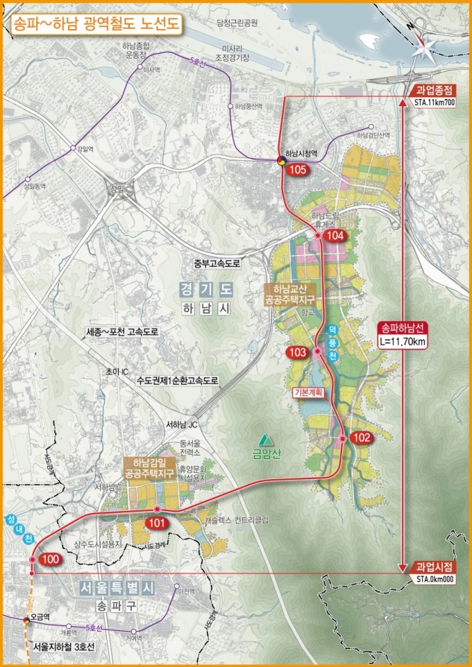 송파하남선은 서울지하철 3호선 오금역에서 하남시청역까지 총연장 11.7㎞ 구간을 연결하는 광역철도 건설사업으로 경기도와 서울시가 공동으로 시행하며 2027년 착공, 2032년 개통을 목표로 추진하고 있다.
