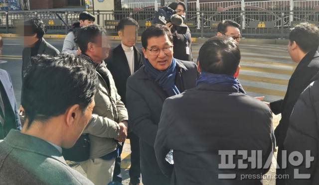 ▲1심에서 벌금 90만원을 선고 받고 당선무효 위기에서 벗어난 신정훈 더불어민주당 국회의원(전남 나주·화순)이 지지자들과 악수하고 있다.2025.01.17ⓒ프레시안(김보현) |