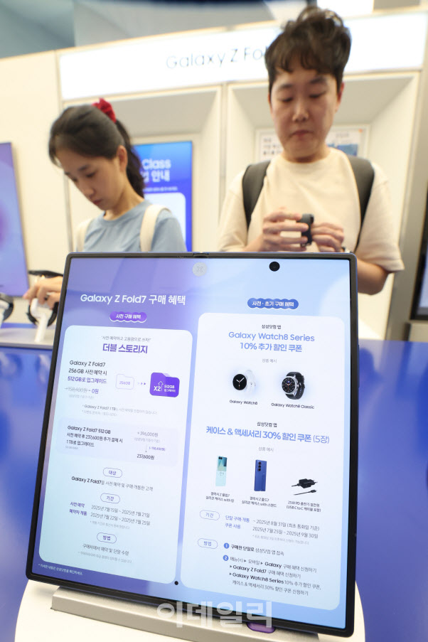 삼성전자 신형 폴더블 스마트폰 갤럭시 Z 폴드7 및 플립7 공개 첫 날인 10일 서울 서초구 삼성 강남점에서 한 소비자가 갤럭시Z 폴드7을 살펴보고 있다.(사진=이영훈 기자) |