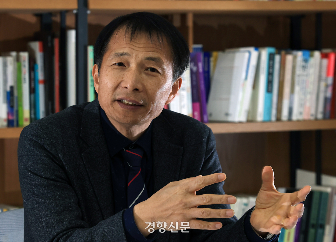 송기호 대통령실 국정상황실장이 변호사 시절인 지난 2월25일 서울 정동 경향신문사에서 ‘트럼프 2.0시대, 한국 정부는 무엇을 해야 하나’라는 주제로 인터뷰를 하고 있다. 서성일 선임기자 |