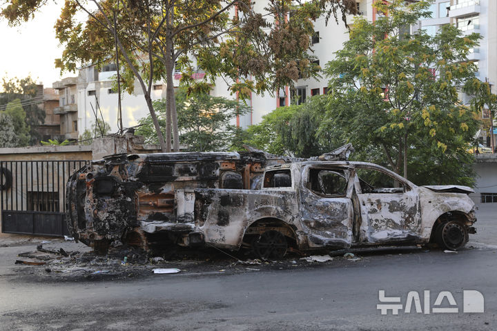 [수와이다=AP/뉴시스] 지난 21일(현지 시간) 시리아 수와이다 거리에 베두인족과 드루즈족 간 충돌로 불에 탄 차량 잔해가 남아 있다. 튀르키예는 22일 이스라엘을 겨냥해 시리아 분열을 시도할 경우 직접 개입할 것이라고 경고했다. 2025.07.23. |
