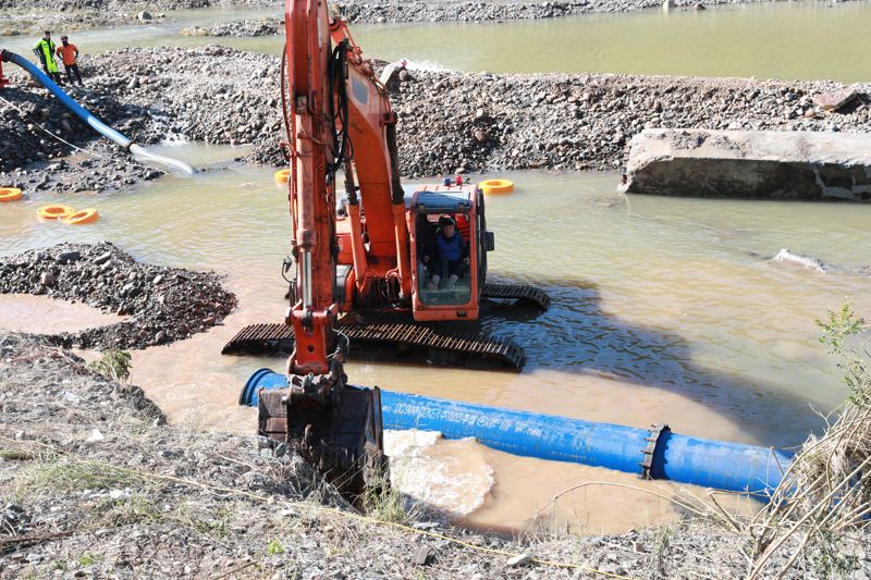 2025년 7월 19일 집중호우 이후 울산 울주군 범서읍 사연리 무동교 인근에서 900mm 송수관로가 파손돼 울산시상수도본부 관계자들이 관로 교체 작업을 벌이고 있다. 울산시 제공 |