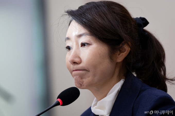 강선우 여성가족부 장관 후보자가 14일 서울 여의도 국회에서 열린 인사청문회에 출석해 의원 질의를 경청하고 굳은 표정을 짓고 있다. /사진=뉴스1 |