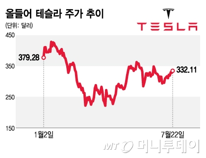 올들어 테슬라 주가 추이/그래픽=김지영 |