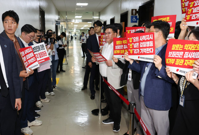 국민의힘 보좌진협의회 소속 보좌관들이 강선우 여성가족부 장관 후보자의 인사청문회가 열리는 14일 국회 여성가족위원회 청문회장 앞에서 사퇴를 촉구하는 피켓시위를 하고 있다.(사진=연합뉴스) |