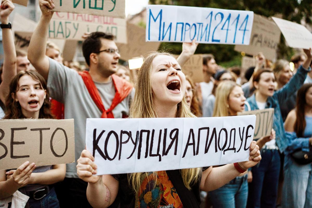 AP통신 등에 따르면 이날 우크라이나 수도 키이우, 르비우, 드니프로, 오데사 등 전국 곳곳에서 수많은 시민들이 젤렌스키 대통령의 법안 서명에 반대하는 시위를 벌였다. 이들은 부패 수사를 마다하려는 젤렌스키 정권의 행보가 권위주의 통치로 유명한 푸틴 정권과 다를 바 없다며 “(우크라이나가 아닌) 러시아에 온 것을 환영한다”고 꼬집는 플래카드를 내걸었다.