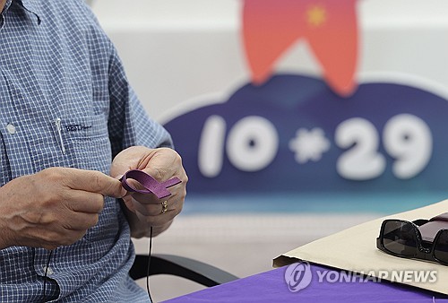 (서울=연합뉴스) 류영석 기자 = 12일 이태원 참사 기억소통공간인 서울 종로구 별들의집에서 유가족 등 참가자들이 오는 24일 참사 발생 1천일을 맞이하며 추모 목걸이를 함께 만들고 있다. 2025.7.12 ondol@yna.co.kr |