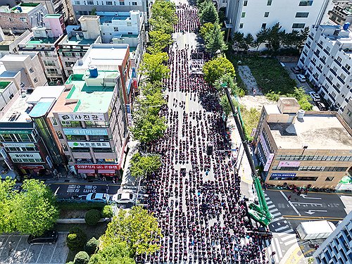 이날 집회로 시청 남문 앞 왕복 6차선 도로가 전면 통제되면서 이 일대 교통 혼잡이 빚어졌다.