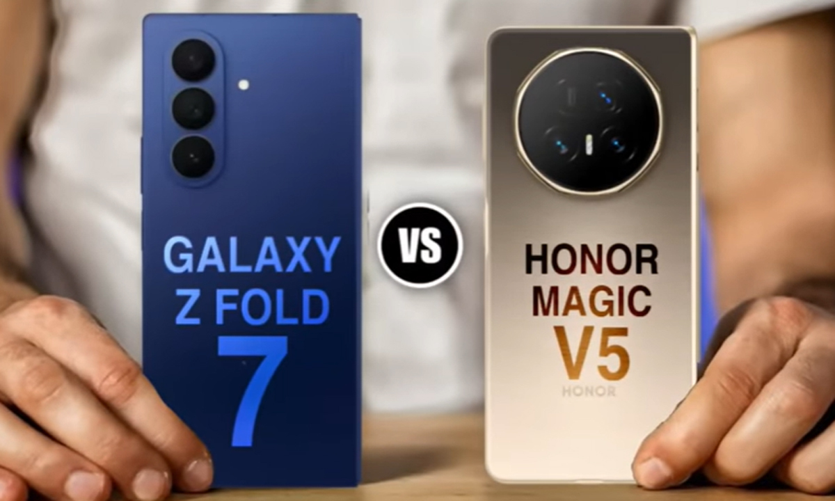 한 유튜버가 삼성전자 ‘갤럭시 Z 폴드7’과 중국 아너 ‘매직 V5’, 화웨이 ‘메이트 X6‘를 비교하는 모습. 유튜브 캡쳐 |