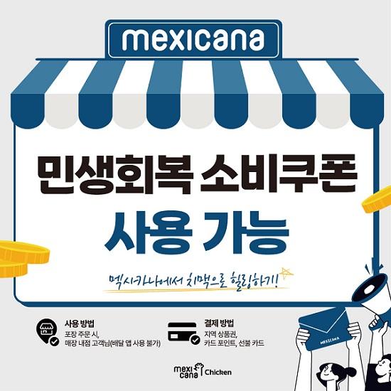'치즈치킨의 원조' 멕시카나가 전국의 모든 멕시카나치킨 가맹점에서 방문 포장과 내점 이용 시 '민생회복 소비쿠폰'으로 모든 제품을 구매 및 결제 가능하도록 시행 중이라고 25일 밝혔다. 지난 21일부터 정부 차원의 소비 진작과 지역경제 활성화 정책의 일환으로 지급이 개시된 민생회복 소비쿠폰은 신용·체크카드, 선불카드, 지역상품권 중 선택 수령이 가능하며, 본인 주소지 관할 행정구역 내에서 사용이 가능하다.