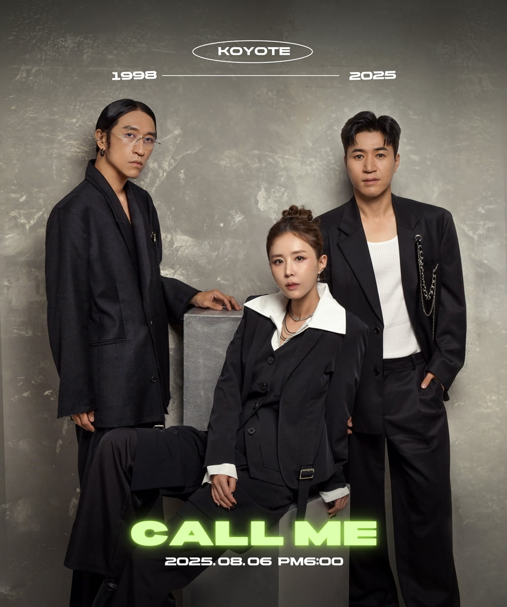 코요태(김종민 신지 빽가)는 25일 오전 11시 신곡 ‘콜미’의 티저 이미지를 공개하고 올여름을 뜨겁게 달굴 컴백을 예고했다.